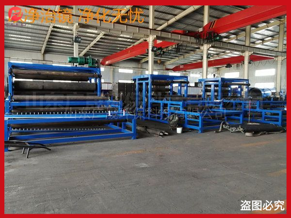 泥漿處理設備是通過兩條濾帶纏繞在一系列順序排列、大小不等的輥輪上,利用濾帶間的擠壓和剪切作用,來脫除料漿中水分的一種壓濾設備,具有著能連續(xù)作業(yè)、自動化程度高、節(jié)能、使用維護方便等優(yōu)點,是一種進行污泥脫水減量化處理的理想設備。