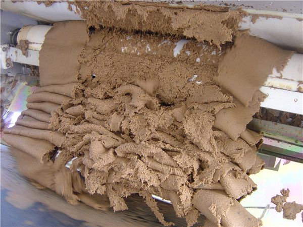 利用上、下濾帶夾著濾餅繞著壓榨輥進行反復地擠壓與剪切作用,脫除了大量的毛細作用水,使濾餅水分逐漸減少。污泥經過精心設計的壓榨輥系的反復擠壓與剪切作用,脫去大量毛細作用水,使污泥水分逐漸減少,形成污泥濾餅,在重選濾帶分開處,濾餅被卸料刮下。卸料后濾布經清洗進入下一下循環。