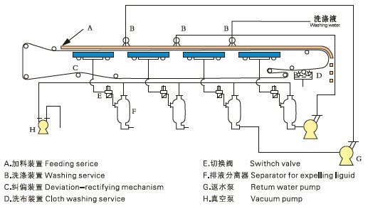三、帶式真空過濾機(jī)工作原理